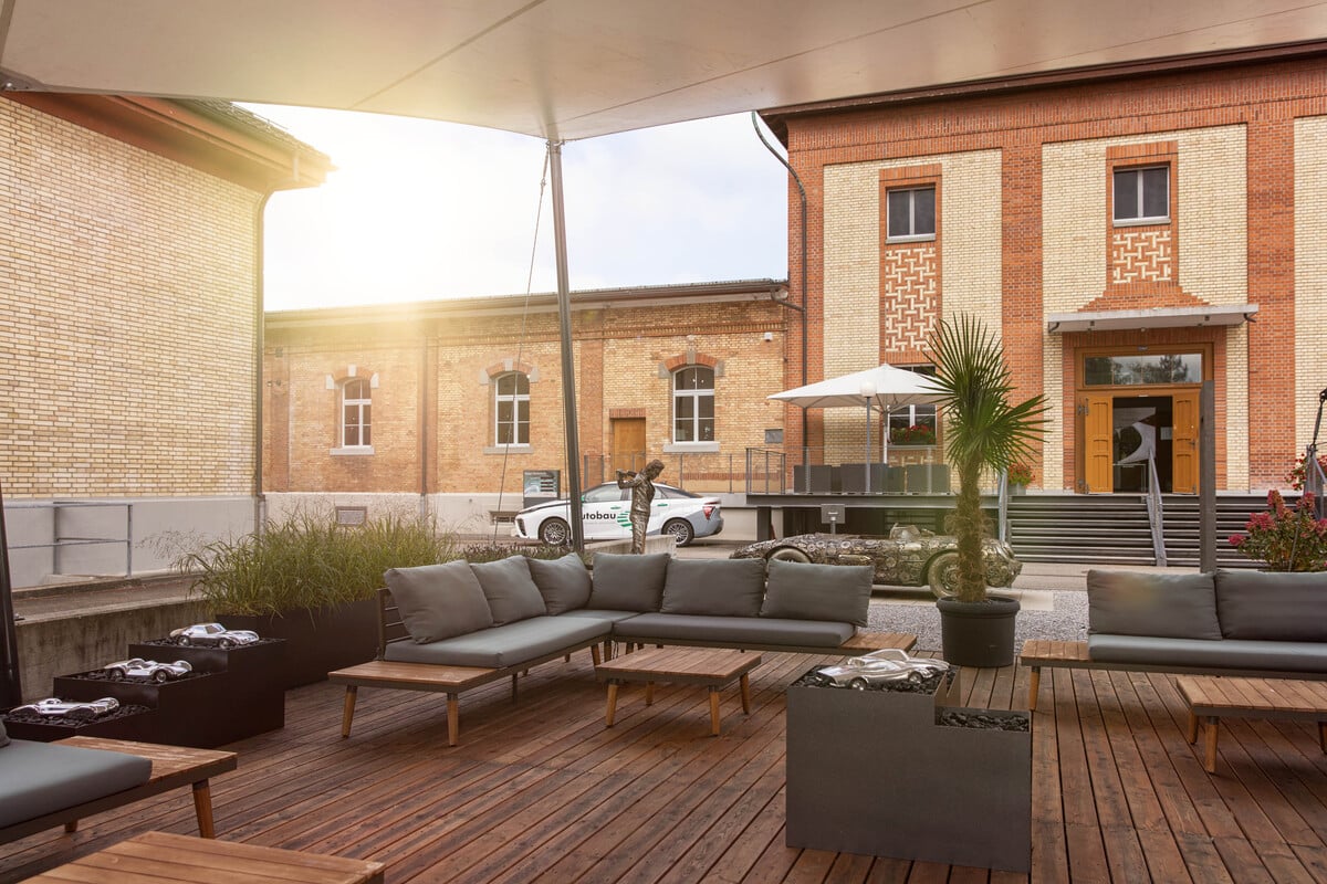 Das museumseigene Bistro mit schöner Sonnenterrasse bietet Snacks und Getränke. Wer früh kommt, kann sich mit dem autobau-Frühstück stärken (Reservierung bis Donnerstag erforderlich).